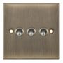This is the Selectric 10 Amp 3 Gang 2 Way Toggle Switch in an Antique Brass finish. It provides reliable multi-point switching with a timeless design to suit a variety of interior styles. As antique brass is finished by hand, minor variations in colour are to be expected. A minimum back box depth of 25mm is required for installation.