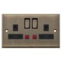 13 Amp 2 Gang Socket with Neons DP Switched Selectric Sockets Antique Brass