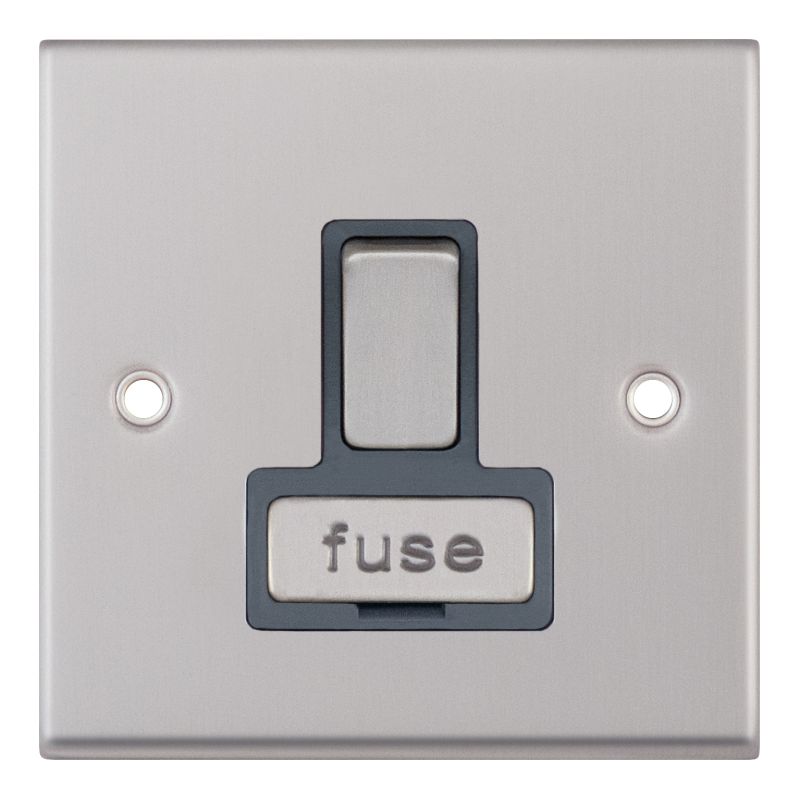 13 Amp Fused Connection Unit DP Switched Grey Insert Selectric Sockets Satin Chrome