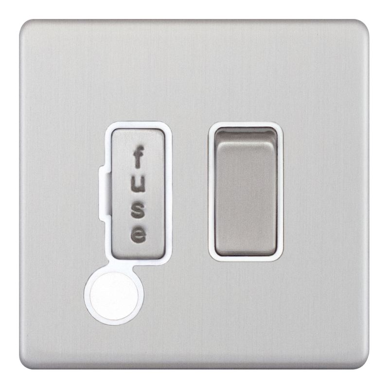 13 Amp Fused Connection Unit DP Switched w/ Flex White Insert Selectric Switches Satin Chrome