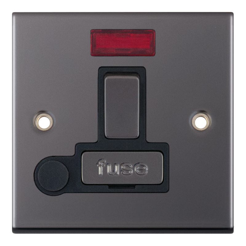 13 Amp Fused Connection Unit with Neon and DP Switched Black Insert Selectric Flex Outlet Black Nickel