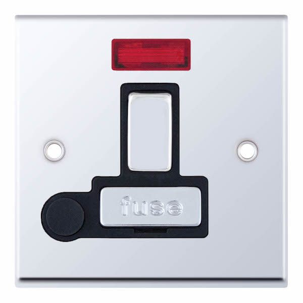 13 Amp Fused Connection Unit with Neon and Flex Outlet DP Switched Black Inserts Selectric Switches Polished Chrome