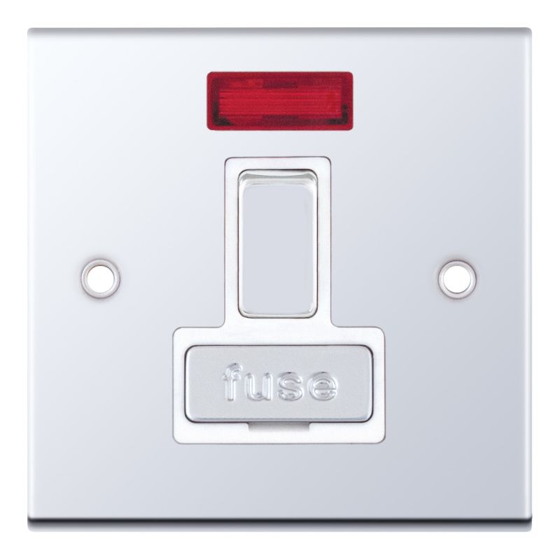 13 Amp Fused Connection Unit with Neon DP Switched White Insert Selectric Spur Units Polished Chrome