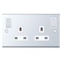 13 Amp Socket 2 Gang Switched DP w/ Outboard Rockers Selectric Sockets Polished Chrome