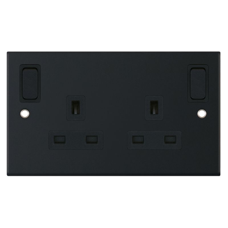 13 Amp Socket Outlet 2 Gang Switched DP Selectric Sockets Matt Black