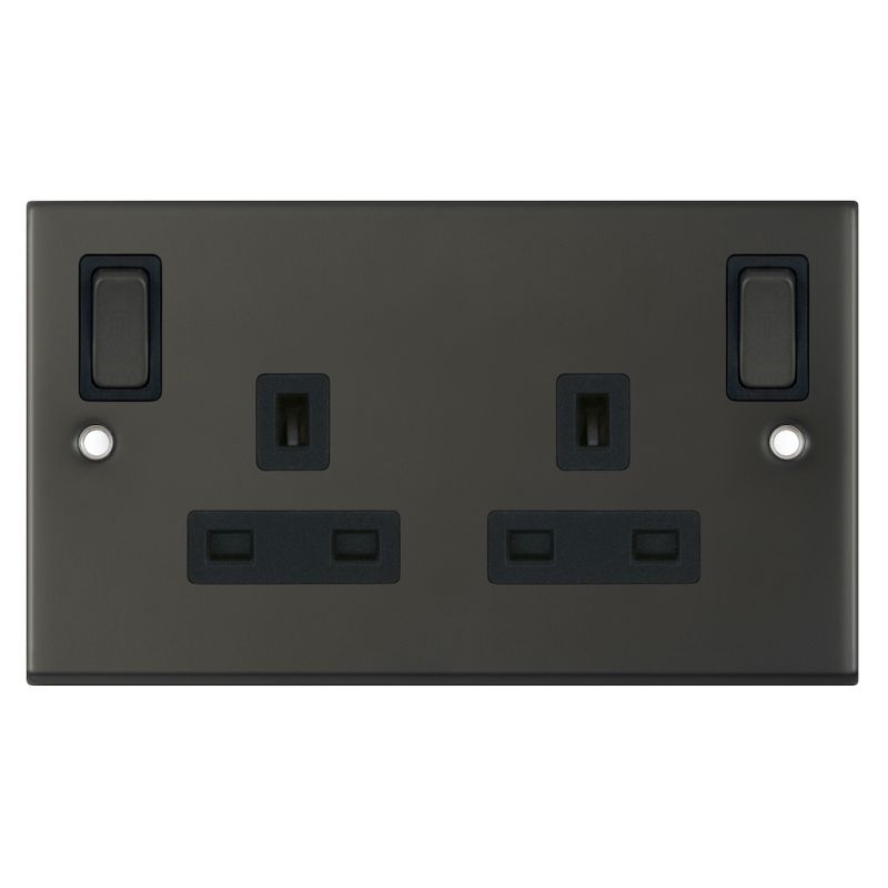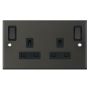 13 Amp Socket Outlet 2 Gang Switched DP Outboard Rockers & 2 Earth Terminals Selectric Sockets Dark Bronze