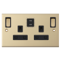 13 Amp Socket Outlet 2 Gang Switched SP 2 x USB Type C Selectric Sockets Satin Brass