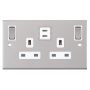 13 Amp Socket Outlet 2 Gang Switched SP Outboard Rockers + 2 Earth Terminals, 2 x USB Type C (3A / 3A) White Inserts Selectric Sockets Satin Chrome