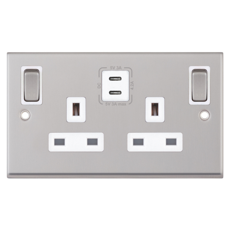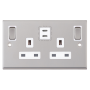 13 Amp Socket Outlet 2 Gang Switched SP Outboard Rockers Selectric Sockets Satin Chrome