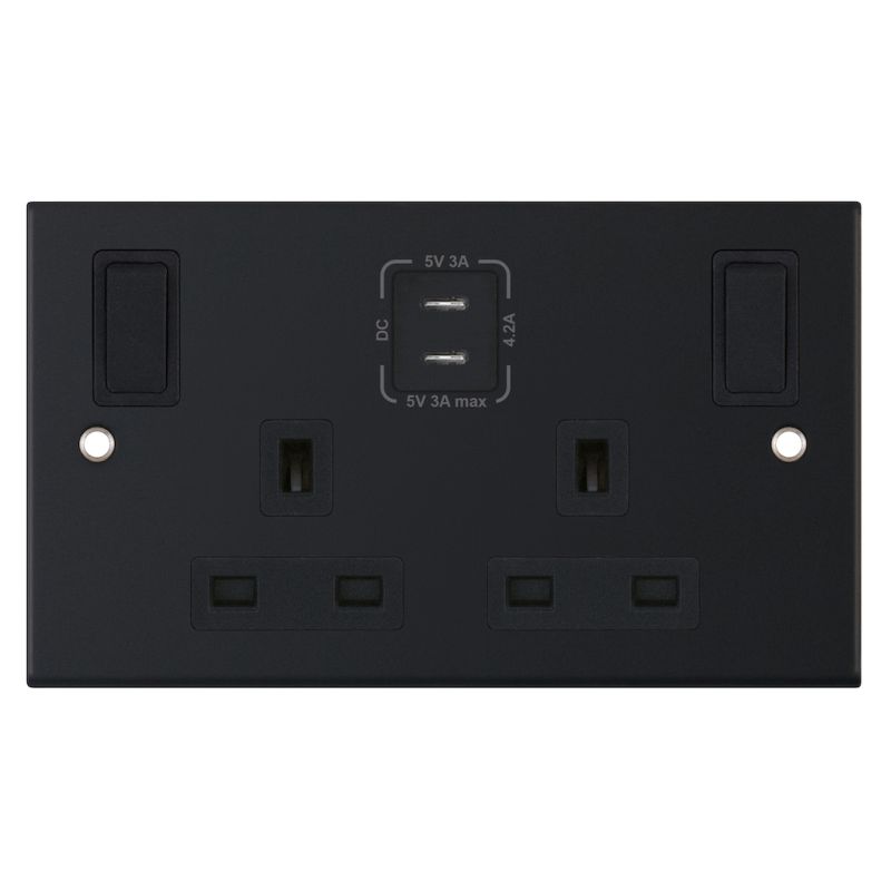 13 Amp Socket Outlet 2 Gang Switched USB Type C (3A / 3A) Selectric Sockets Matt Black