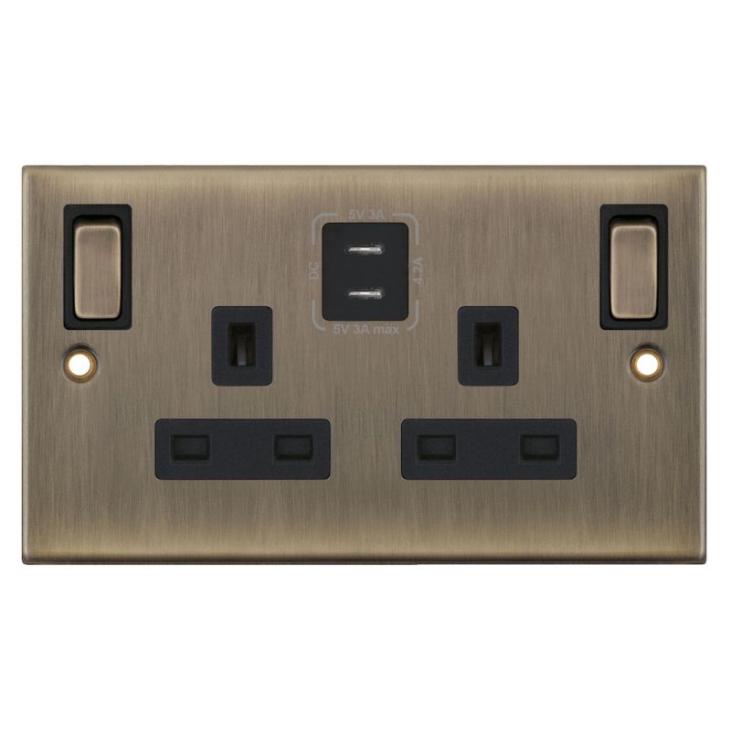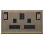 13 Amp Socket Outlet 2G Outboard Rockers USB Type C (3A / 3A) Selectric Sockets Antique Brass