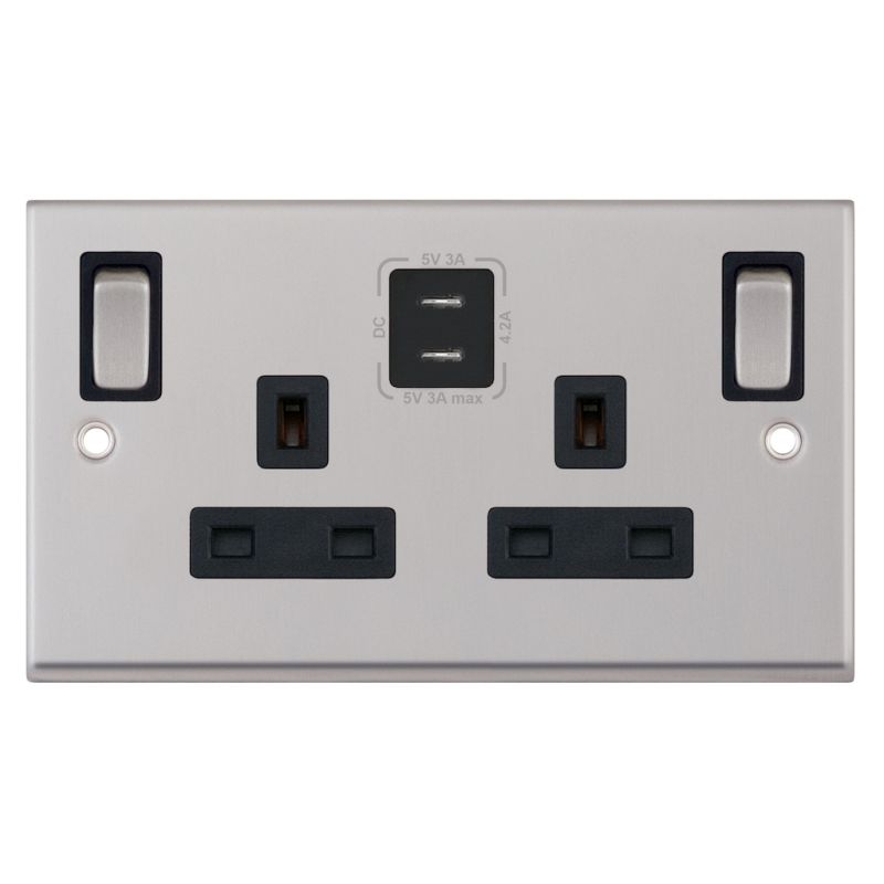 13A Socket 2G Switched SP Outboard Rockers 2 x USB Type C (3A / 3A) Selectric Sockets Satin Chrome