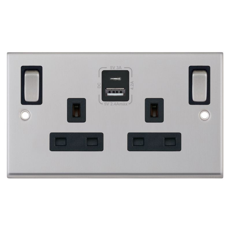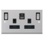 13A Socket Outlet 2g Switched SP Outboard Rockers USB Type A & USB Type C (2.4A / 3A) Selectric Sockets Satin Chrome