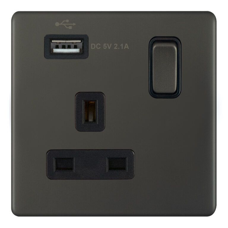 1G 13A Socket w/ 1 x USB Port SP Switched Selectric Sockets Dark Bronze