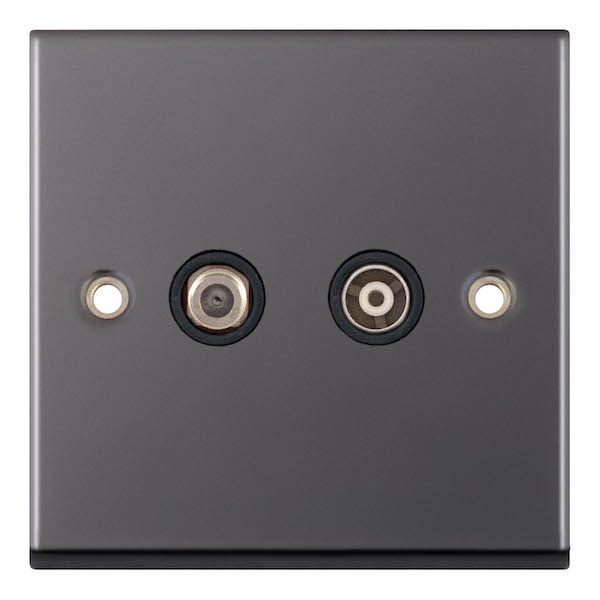 1G F-Type Satellite Socket + 1 Gang TV/FM Coaxial/Aerial Socket Selectric Sockets Black Nickel