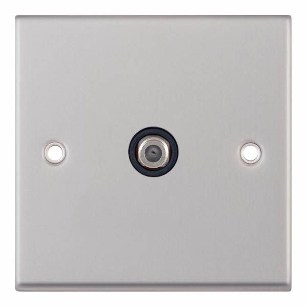 1G F-Type Satellite Socket Satin Chrome Black Insert Selectric Sockets