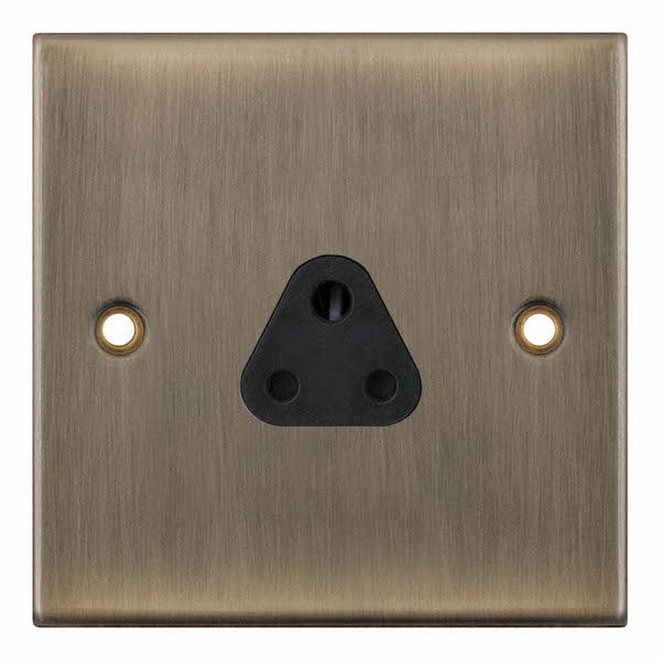 2 Amp Round Pin Socket 3 Pin Unswitched Black Insert Selectric Sockets Antique Brass