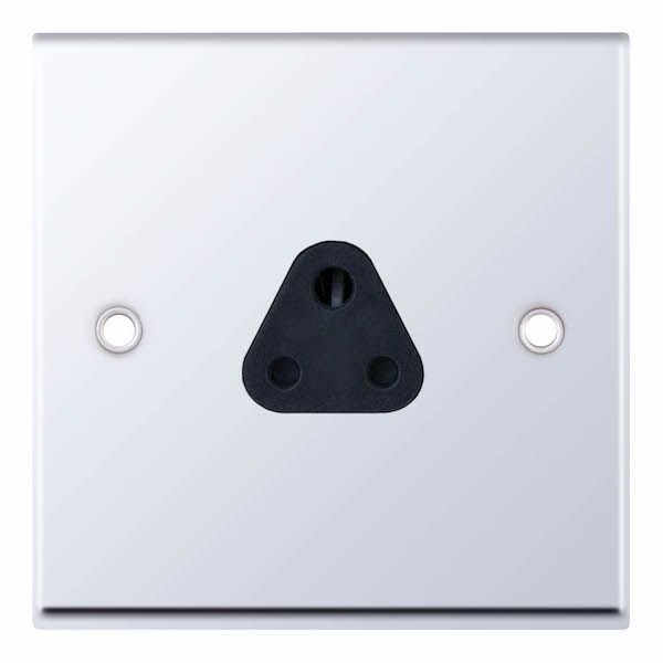 2 Amp Round Pin Socket 3 Pin Unswitched Black Insert Selectric Sockets Polished Chrome