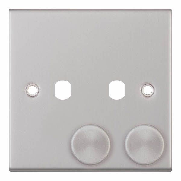 This is the Selectric 2 Aperture Empty Dimmer with Knobs Satin Chrome.