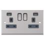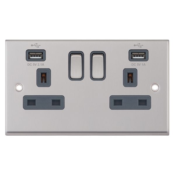 2 Gang 13 Amp Socket 2 x USB Ports SP Switched Grey Insert Selectric Sockets Satin Chrome