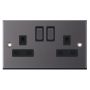 2 Gang 13 Amp Socket DP Switched Black Insert Selectric Sockets Black Nickel