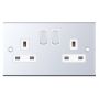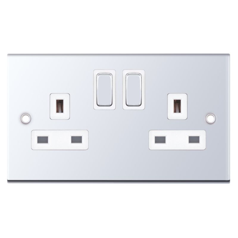2 Gang 13 Amp Socket DP Switched White Insert Selectric Sockets Polished Chrome
