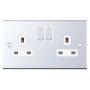 2 Gang 13 Amp Socket SP Switched White Insert Selectric Sockets Polished Chrome