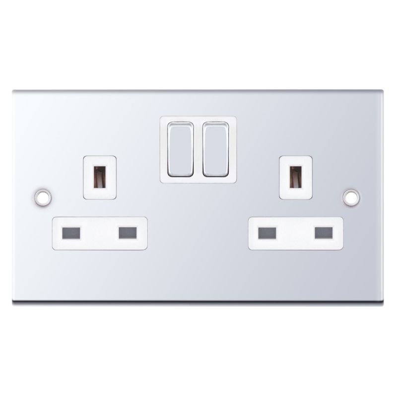 This is the Selectric 2 Gang 13 Amp Socket SP Switched Polished Chrome White Insert.