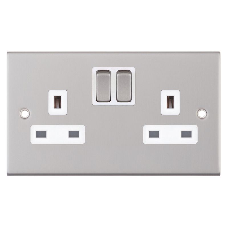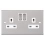 2 Gang 13 Amp Socket SP Switched White Insert Selectric Sockets Satin Chrome