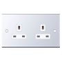 2 Gang 13 Amp Socket Unswitched White Insert Selectric Sockets Polished Chrome