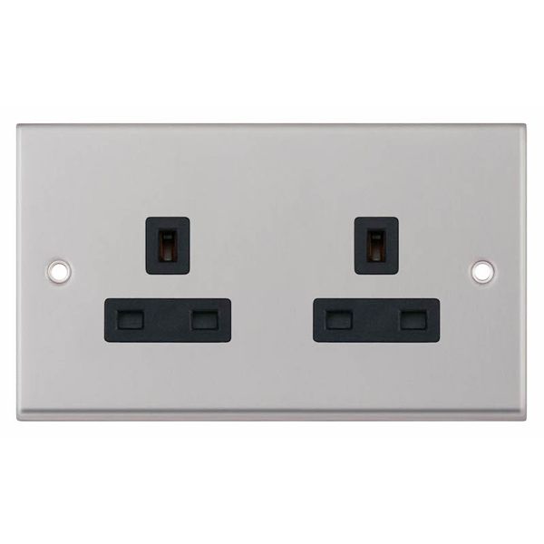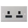 2 Gang 13 Amp Socket Unswitched Black Inserts Selectric Sockets Satin Chrome