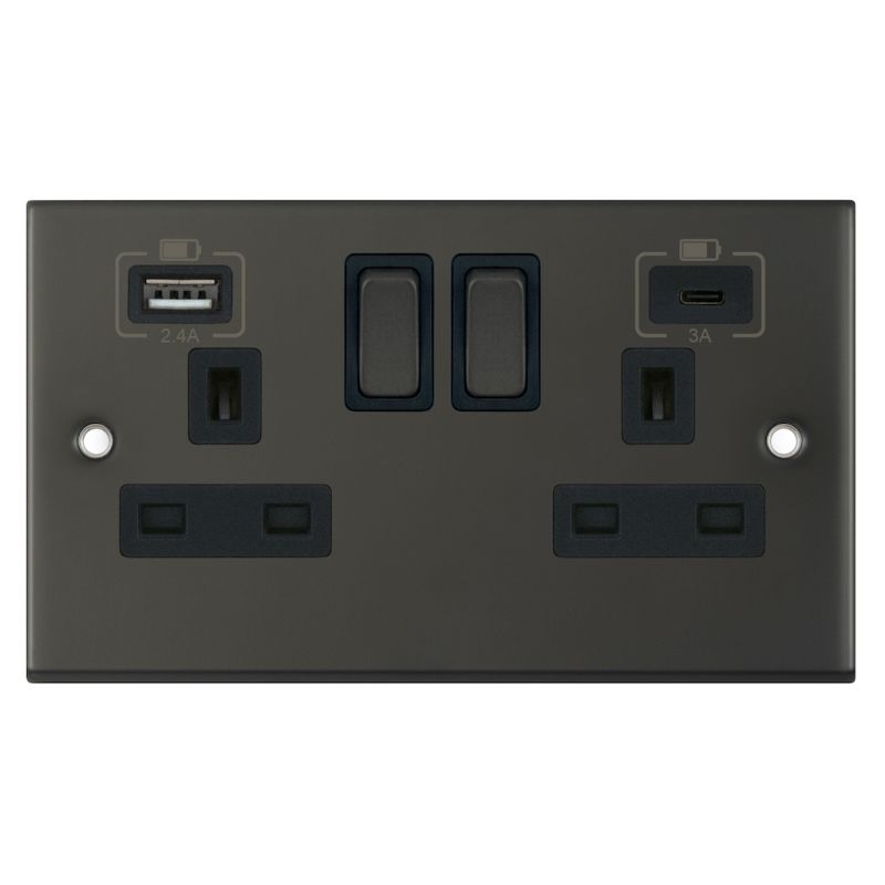 2 Gang 13 Amp Socket with 2 x USB Ports 1 C Type 1 A type 2.4A / 3A SP Switched Selectric Sockets Dark Bronze