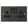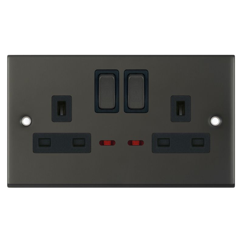 2 Gang 13 Amp Socket with Neons DP Switched Black Insert Selectric Sockets Dark Bronze