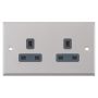 2 Gang 13 Amp Socket with Grey Insert Selectric Sockets Satin Chrome