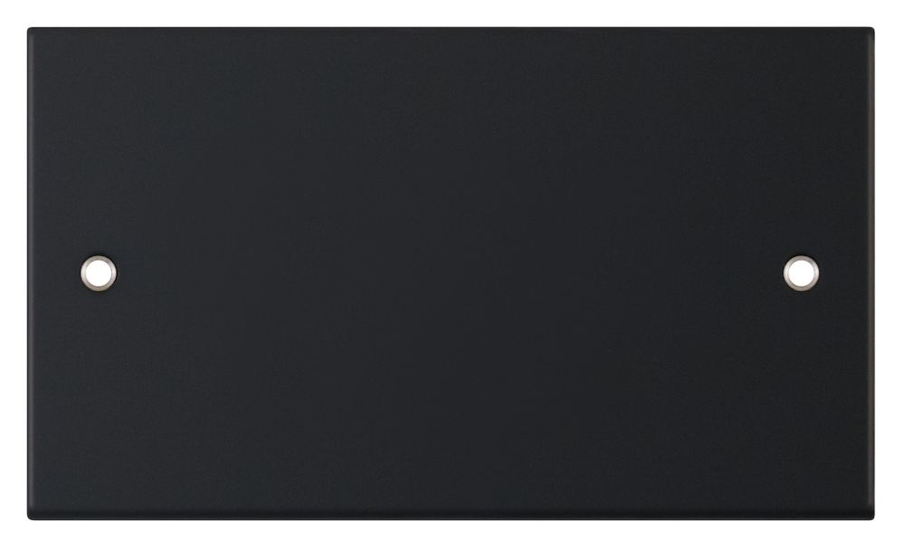 The Selectric 2 Gang Blanking Plate features a matt black finish with a black insert. It provides a simple solution for covering double electrical outlets that are no longer in use, maintaining a neat and safe finish for the wall. This plate requires a minimum back box depth of 25mm.