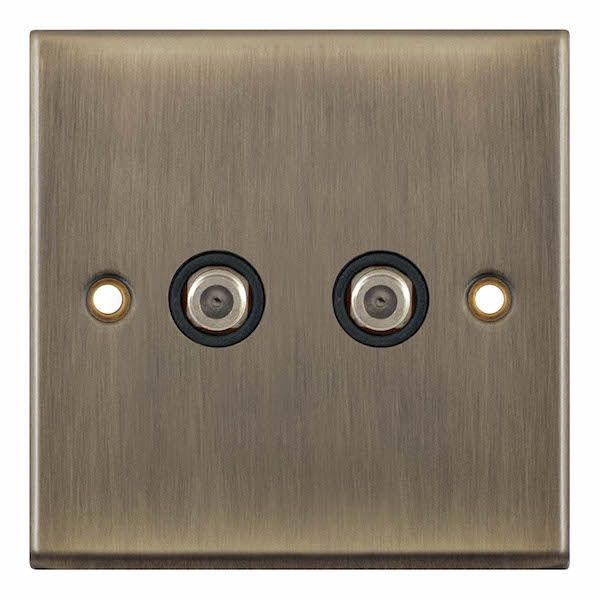 2 Gang F-Type Satellite Socket Black Insert Selectric Sockets Antique Brass