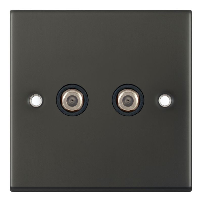 2 Gang F-Type Satellite Socket Black Insert Selectric Sockets Dark Bronze