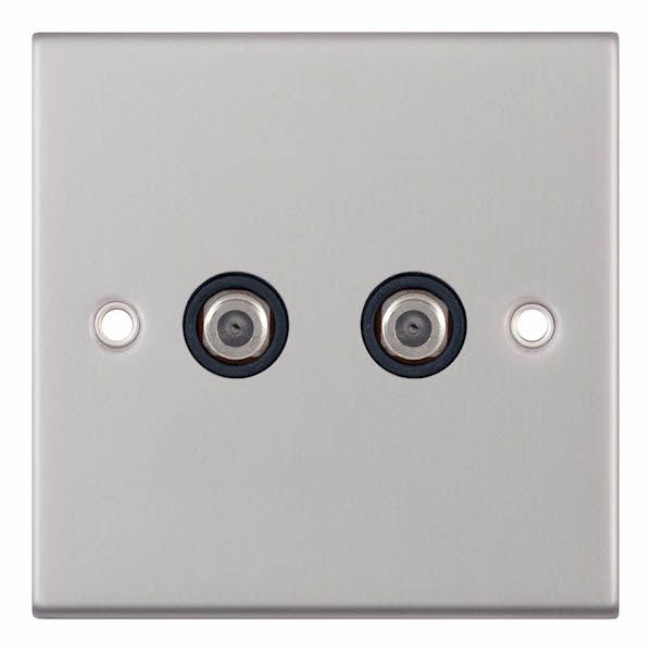 2 Gang F-Type Satellite Socket with Black Insert Selectric Sockets Satin Chrome