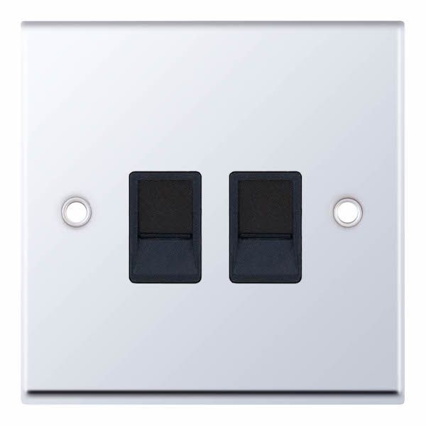 2 Gang RJ45 Computer/Data Socket Black Insert Selectric Sockets Polished Chrome