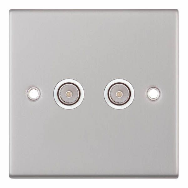 2 Gang TV/FM Coaxial/Aerial Socket White Insert Selectric TV Points Satin Chrome