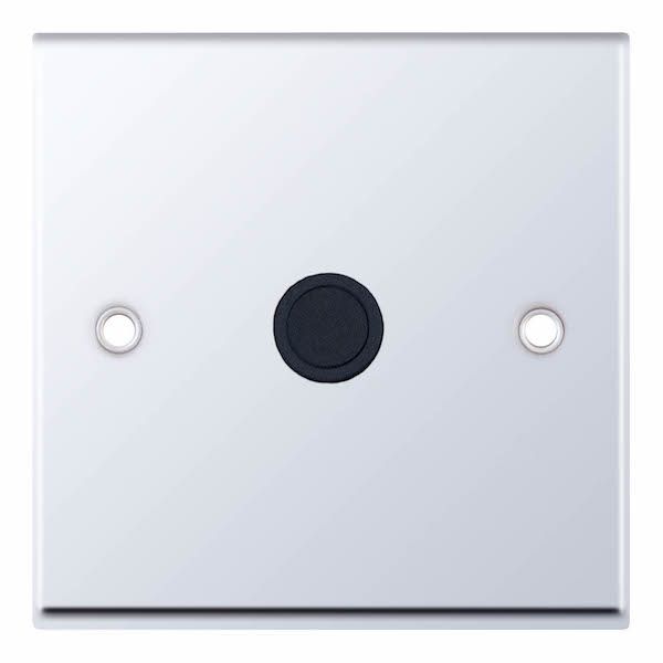 This is the Selectric 20 Amp Cable Outlet with Centre Entry in Polished Chrome with Black Insert. It is designed for connecting flexible cables to appliances such as towel rails and similar equipment, providing a neat and secure cable outlet solution. The polished chrome plate with black insert offers a sleek, modern appearance. A minimum back box depth of 25mm is required for installation.
