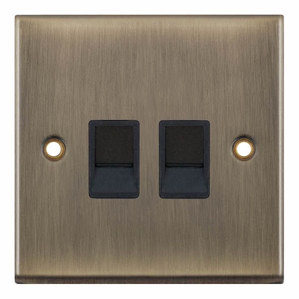 2G RJ45 Computer/Data Socket Black Insert Selectric RJ45 Points Antique Brass