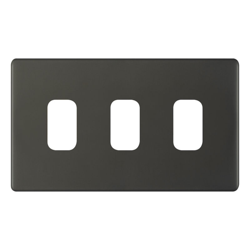 The Selectric 3 Aperture Modular Plate 5M-PLUS Dark Bronze is designed for use with all Selectric GRID360 modules, offering a flexible and contemporary solution for modular wiring accessories. Part of the GRID360 range, it is available in a variety of plate finishes with apertures from 1 to 12 to complement all current Selectric ranges. Easy to install with modules screwing directly into the plate and no need for yokes, it also features a screwless click-on front plate for a sleek, modern appearance.