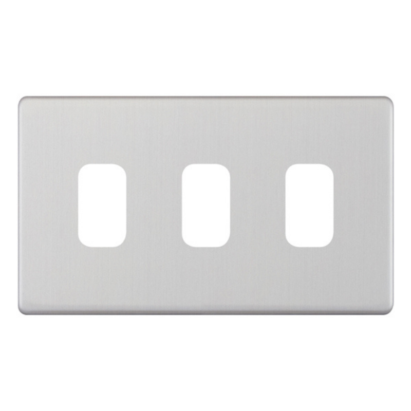 The Selectric 3 Aperture Modular Plate 5M-PLUS Satin Chrome is designed for use with all Selectric GRID360 modules, offering a flexible and modern solution for modular wiring accessories. Part of the GRID360 range, it is available in multiple plate finishes with apertures from 1 to 12 to complement all current Selectric ranges. Modules screw directly into the plate for quick and easy installation with no need for yokes, while the screwless click-on front plate provides a clean, contemporary finish.
