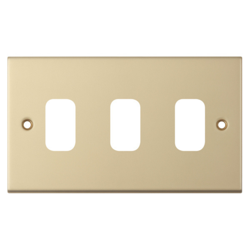 3 Aperture Modular Plate 5M Selectric 3 Gang Grid Faceplate Satin Brass