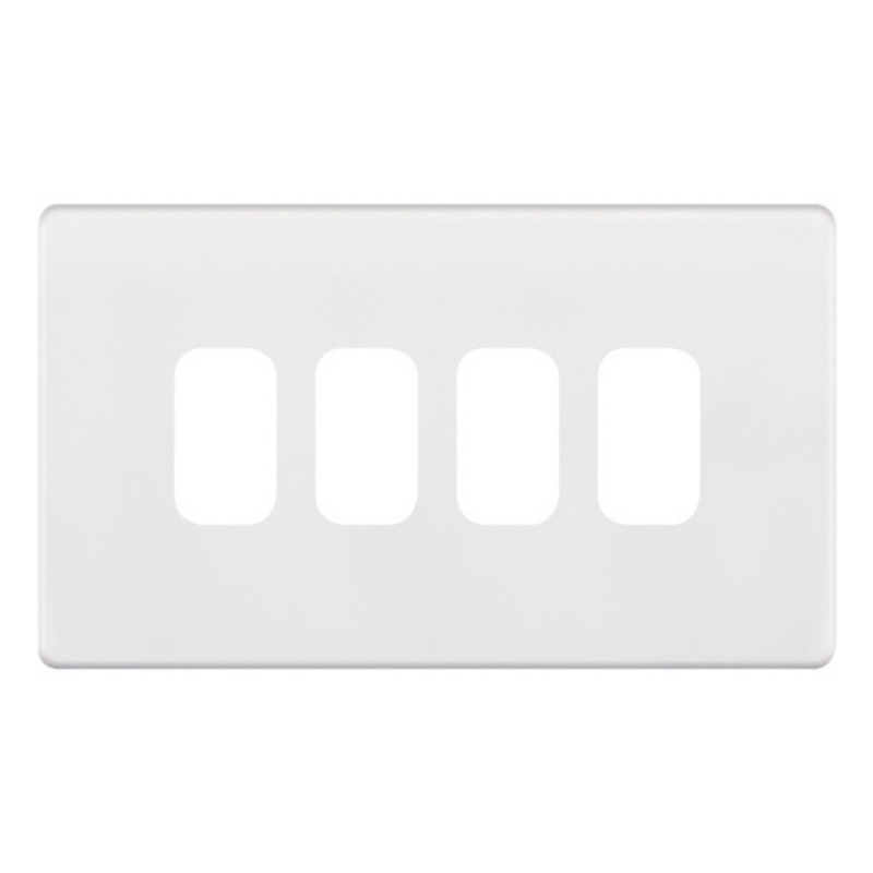 4 Aperture Modular Plate 5M-PLUS Selectric 4 Gang Grid Faceplate Matt White
