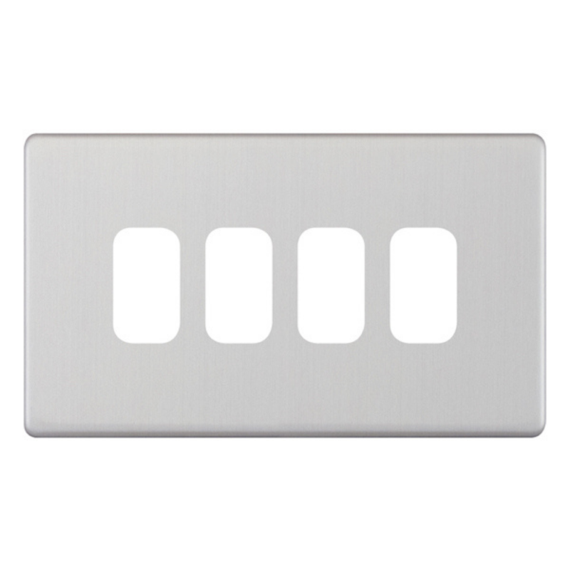4 Aperture Modular Plate 5M-PLUS Selectric 4 Gang Grid Faceplate Satin Chrome