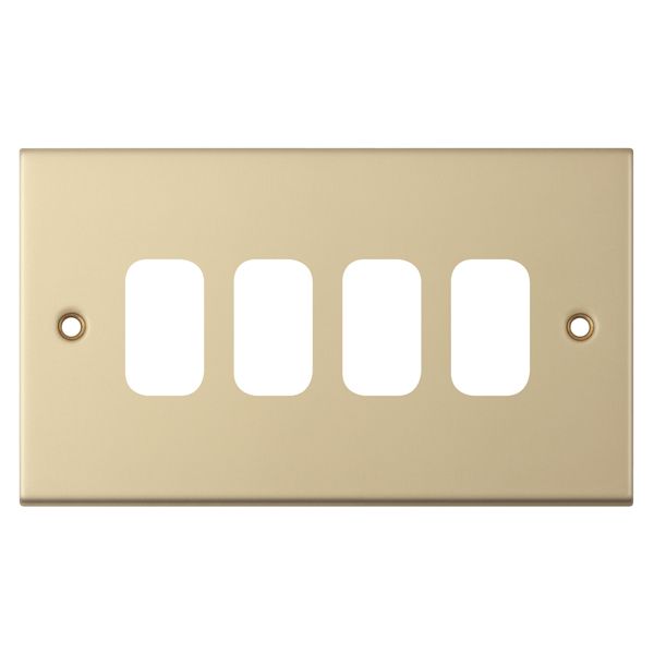 4 Aperture Modular Plate 5M Selectric 4 Gang Grid Faceplate Satin Brass