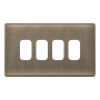 4 Aperture Modular Plate 5M-PLUS Selectric 4 Gang Grid Faceplate Antique Brass