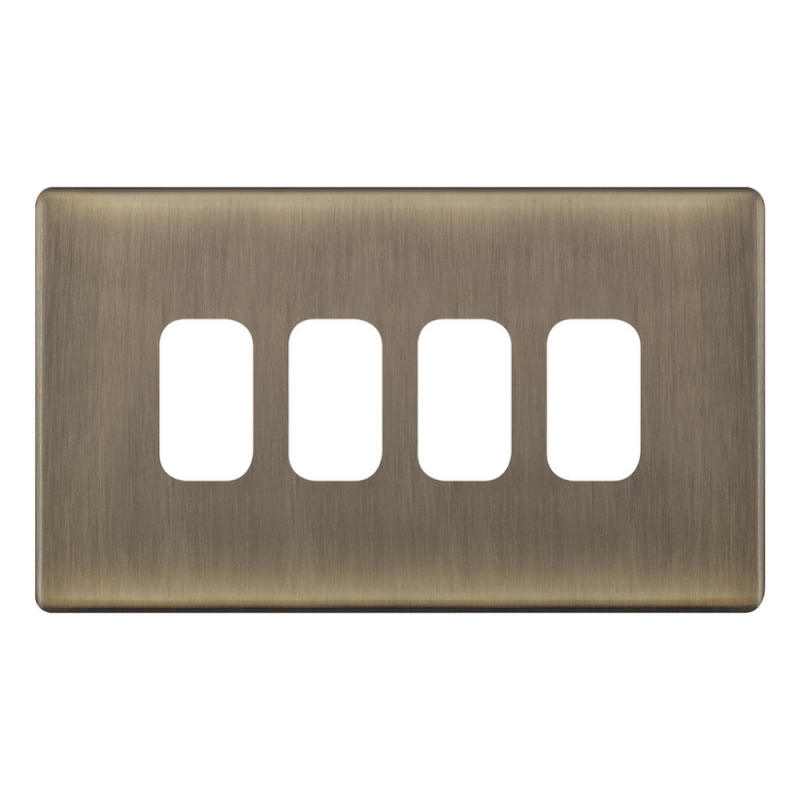 The Selectric 4 Aperture Modular Plate in Antique Brass (5M-PLUS) combines timeless design with modern functionality. Part of the Grid 360 5M-PLUS range, it features a sleek, screwless clip-on front plate that offers a seamless, contemporary finish.